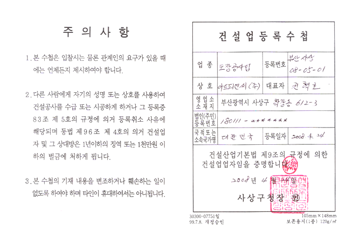 | 방수기능사 | 1명 |
