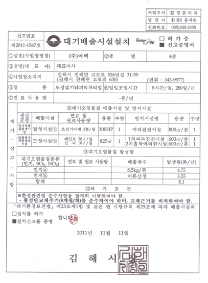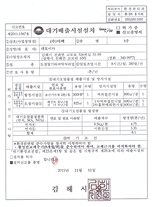 대기 배출시설설치 신고 증명서