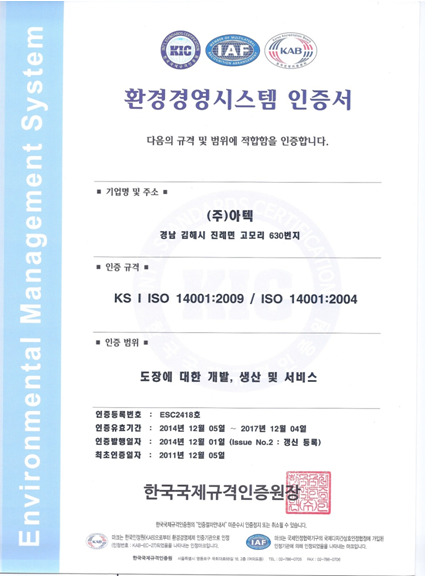 ISO 14001 환경경영시스템 인증서